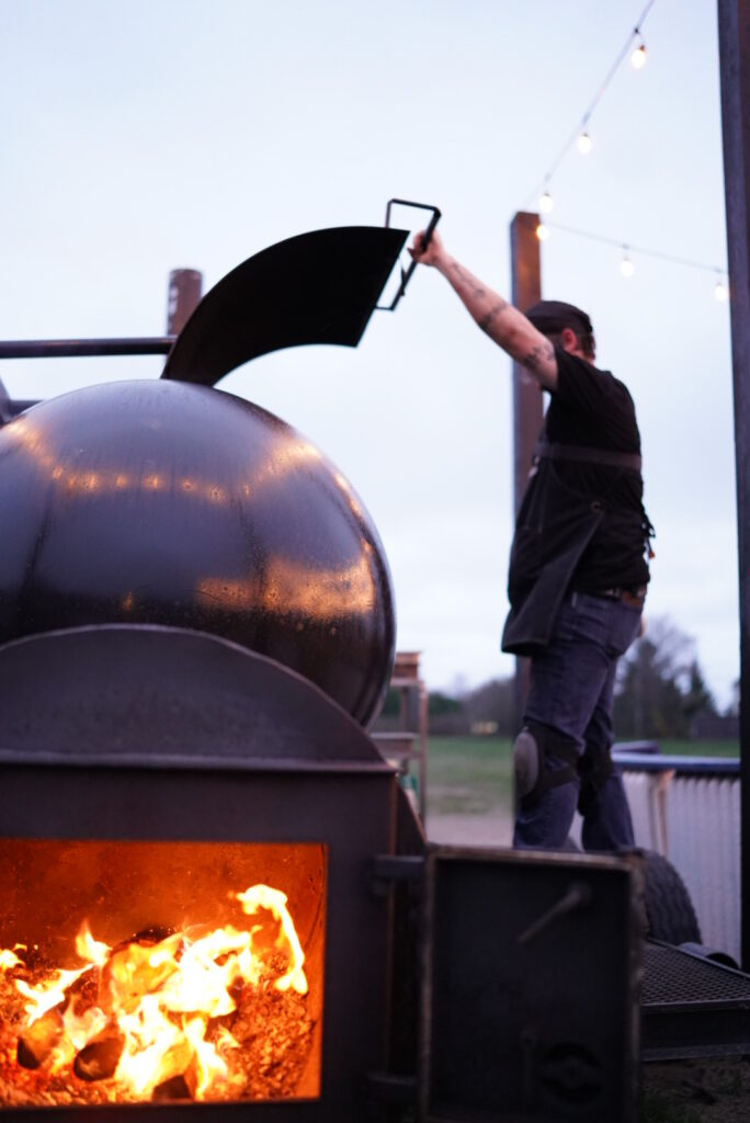 Shediac Wonderland set about bringing the Neptune back. The old canteen was gutted and completely rebuilt as the Morse et Marteaux BBQ Smokehouse, equipped with an authentic 1000-gallon wood-fired Texas-style smoker. The name, like everything in the Wonderland family, is a nod to Carroll: *morse* is French for walrus, and *marteaux* for hammers, the tools of a carpenter. The Walrus and the Carpenter, reimagined as a smokehouse. Because in Wonderland, even the food has a backstory.
